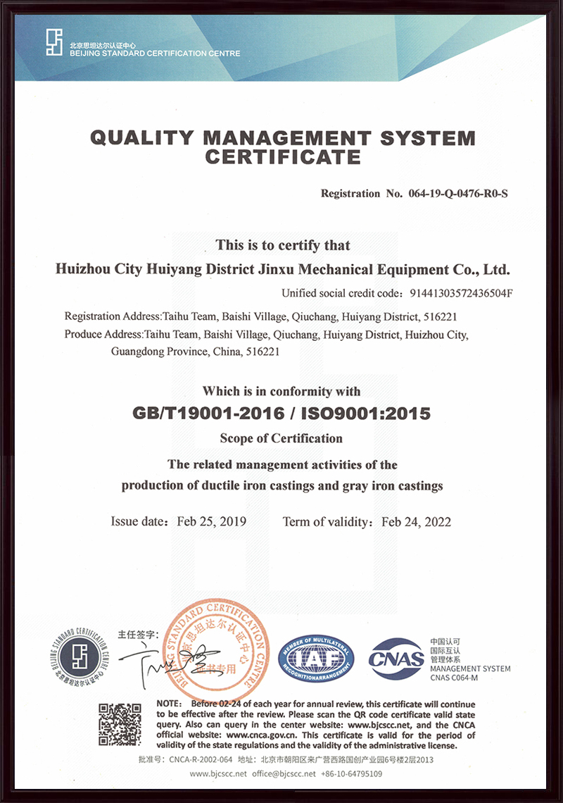 惠州市惠陽區金旭機械設備有限公司(原名深圳金泉鑄造廠),始建于1992年2月,公司坐落于惠州市惠陽區秋長白石大湖工業區,是一家集模型、鑄造、機械加工于一體的綜合型企業,主要生產高強度高韌性球墨鑄鐵、灰鑄鐵及鑄銅、鑄鋁等各種材質及牌號鑄件。